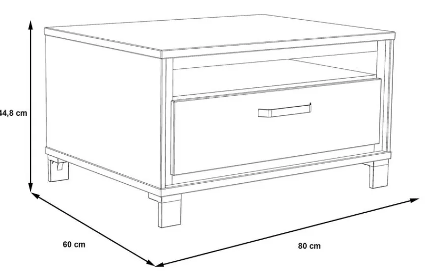 - Mit 1 Schubkasten und 1 offenen Fach