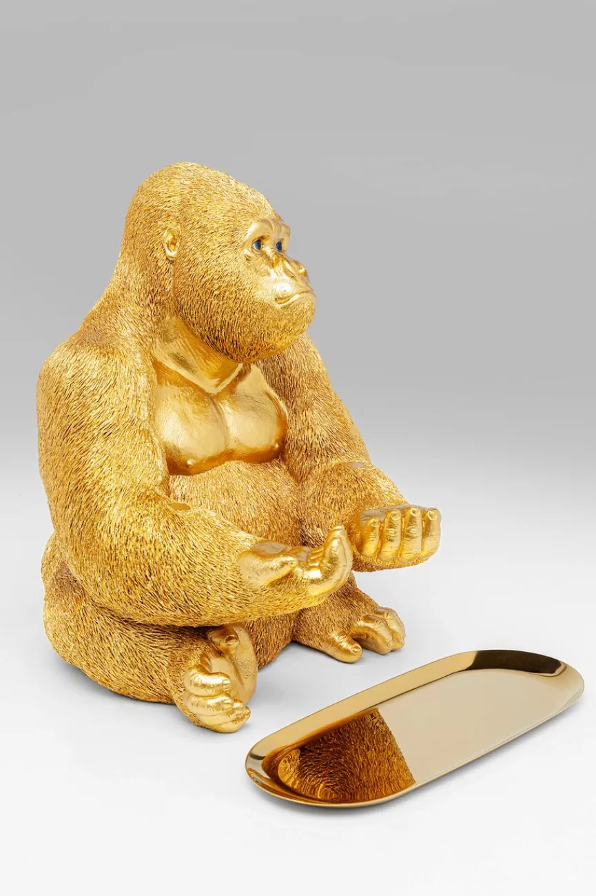 Das Deko-Objekt Gorilla legt an jedem Einsatzort einen glanzvollen Auftritt hin. Doch diese außergewöhnliche Tierstatue beeindruckt nicht nur durch ihr Aussehen, sondern ist auch sehr nützlich. So kann das Deko-Objekt Gorilla beispielsweise auf dem Schminktisch Beautyaccessoires oder im Homeoffice Schreibutensilien griffbereit halten. Als Servierschüssel für Snacks bringt dieser originelle Butler Ihre Gäste garantiert zum Staunen und Schmunzeln.