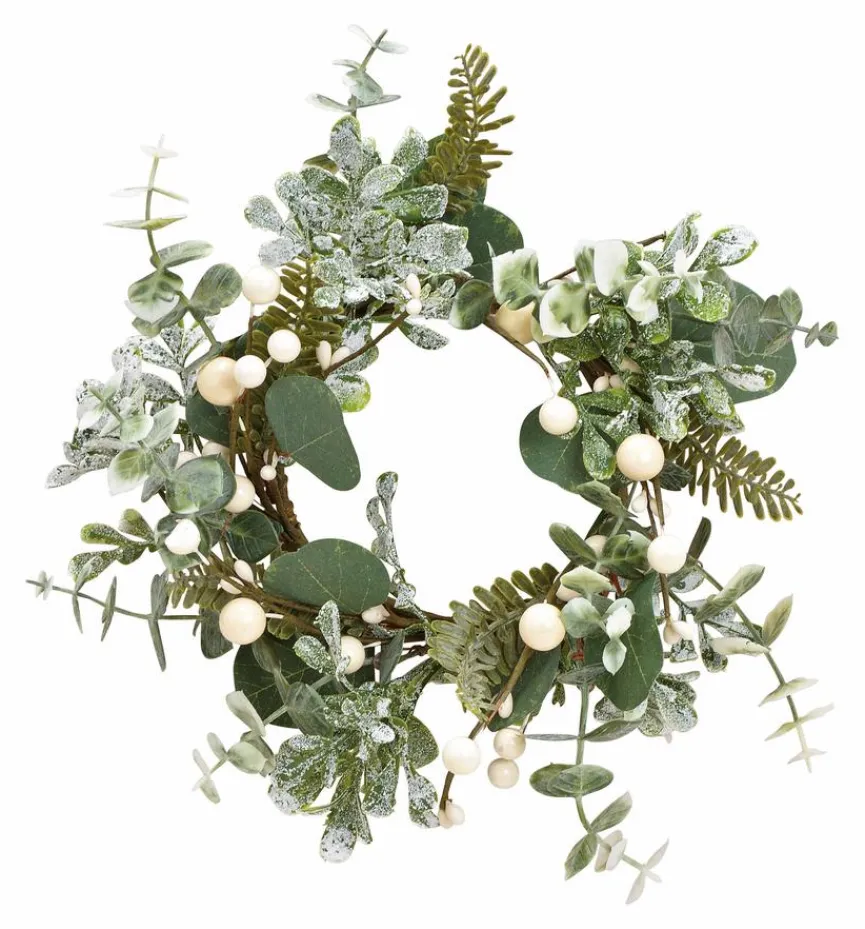 Mit dem Deko-Objekt Kranz Ø 22 cm sorgen Sie in Ihrer Wohnung für Eleganz und Harmonie zugleich. Dieses hübsche Accessoire verleiht Ihrem Ambiente eine magische Note und eignet sich ideal als Herzstück Ihrer Dekoration. Das Deko-Objekt Kranz Ø 22 cm setzt mit seinen winterlich schimmernden Blättern und Kugeln einen tollen Akzent an der Türe, am Fenster oder am Sideboard.