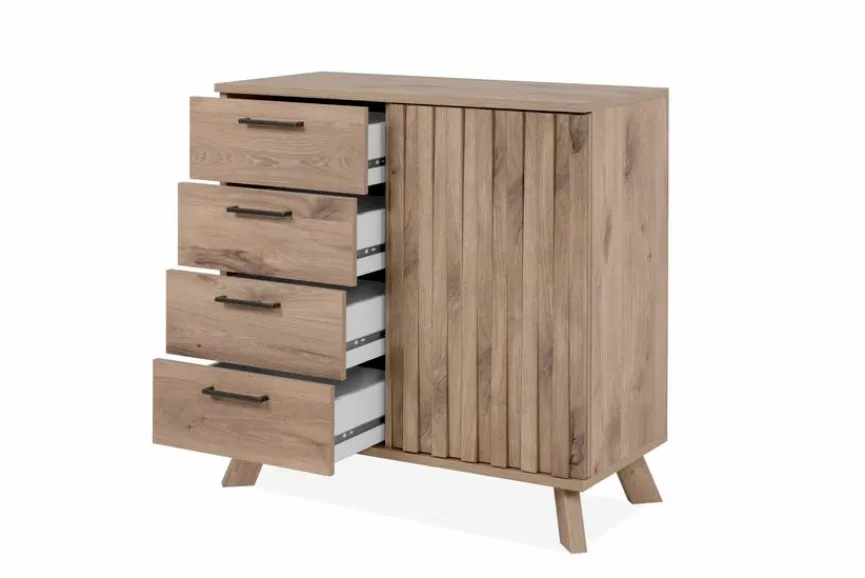 Wer außergewöhnliches Design liebt, wird mit der Kommode Wellington garantiert fündig. Sie besticht durch ihre warme Holzoptik, die Ihrem Wohnzimmer eine gemütliche Note verleiht. Zu einem echten Blickfang macht sie das aparte Reliefdesign der Seitentür. Darüber hinaus bietet die Kommode Wellington Stauraum für viele Dinge des Alltags und sorgt so immer für Ordnung.