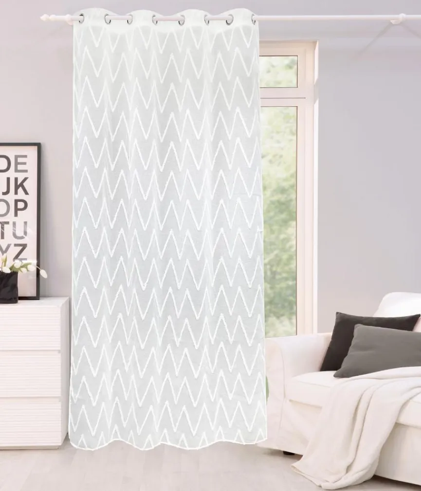 Mit dem Ösenschal Zahadou ergänzen Sie Wohnräume unterschiedlichster Art um eine ebenso praktische wie geschmackvolle Komponente. Der Ösenvorhang lässt sich spielend leicht montieren und schützt zuverlässig vor unerwünschten Blicken. Das attraktive Zickzack-Muster macht den erstklassig verarbeiteten Ösenschal Zahadou darüber hinaus zu einer attraktiven Deko.