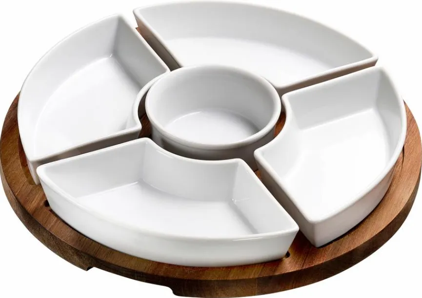 Die Schale Gandia 6tlg. der Marke Ritzenhoff & Breker wartet förmlich darauf, Ihnen die köstlichsten Leckereien zu präsentieren. Gerne nimmt das Ensemble verschiedene eingelegte Gemüse wie z.B. getrocknete Tomate in Öl oder Salz- und Gewürzgurkenspezialitäten auf. Aber auch eine Zusammenstellung verschiedener Nußsorten sind in der Schale Gandia 6tlg. bestens aufgehoben.
