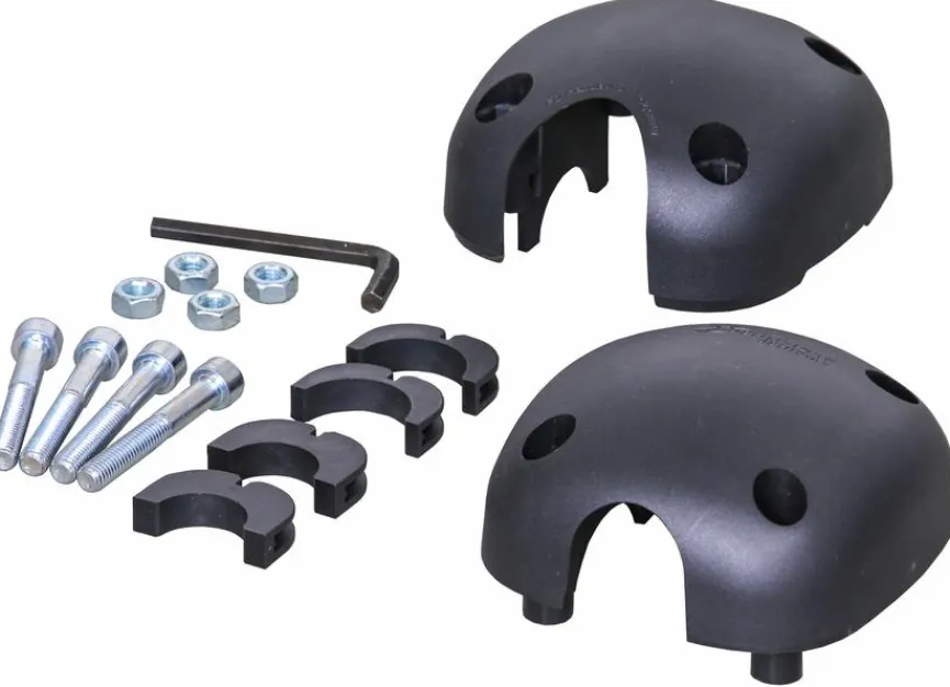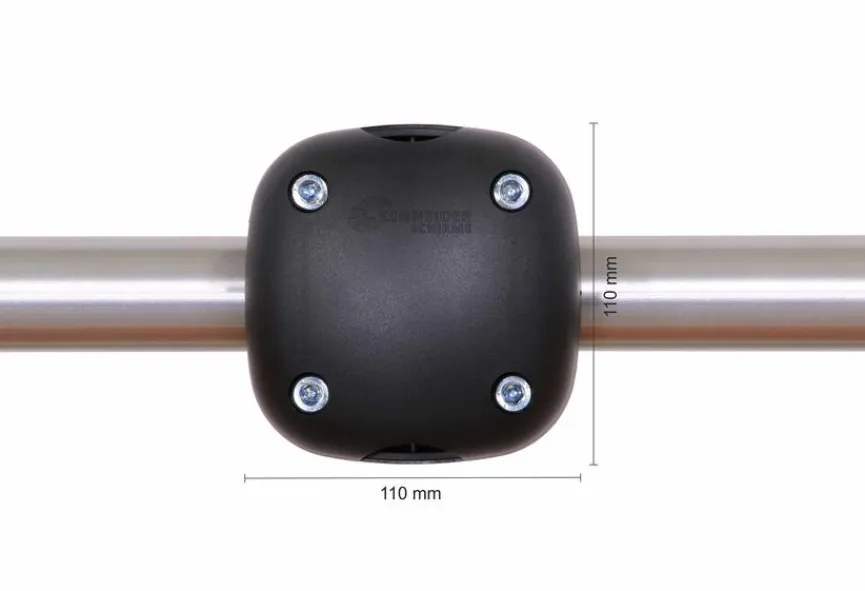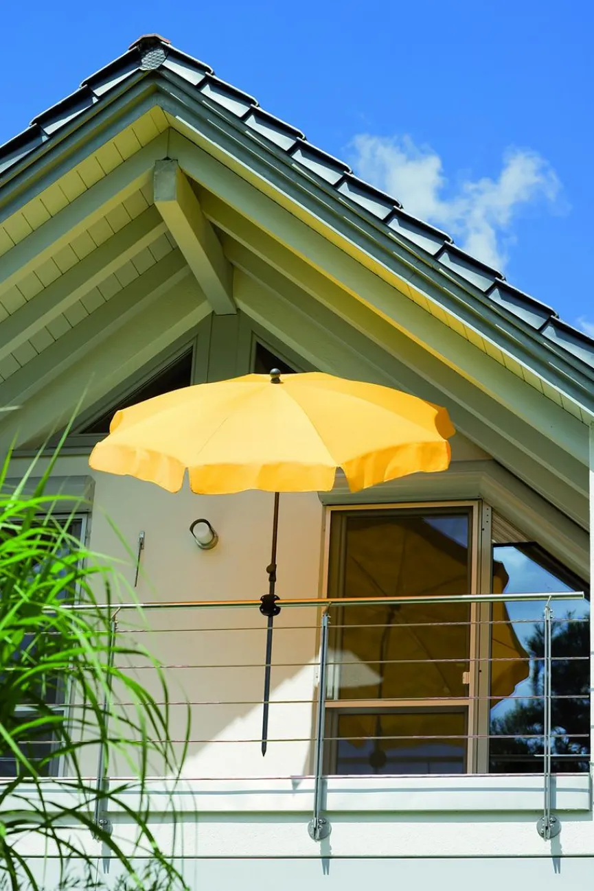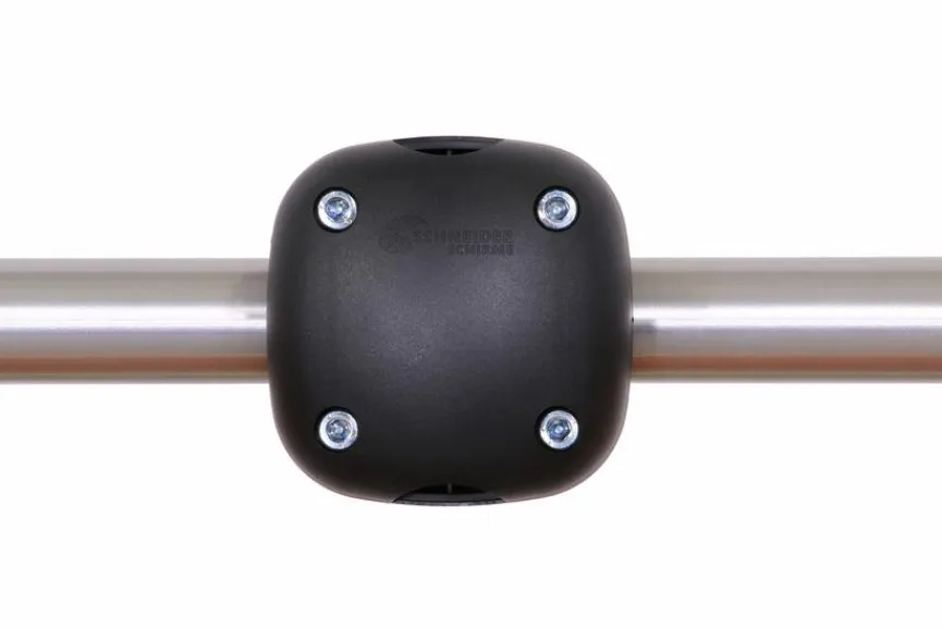 - Die beiden Halbschalen des Schirmhalters werden durch vier Schrauben sicher geschlossen und fixieren somit Balkongeländer und Schirmstock gleichermaßen