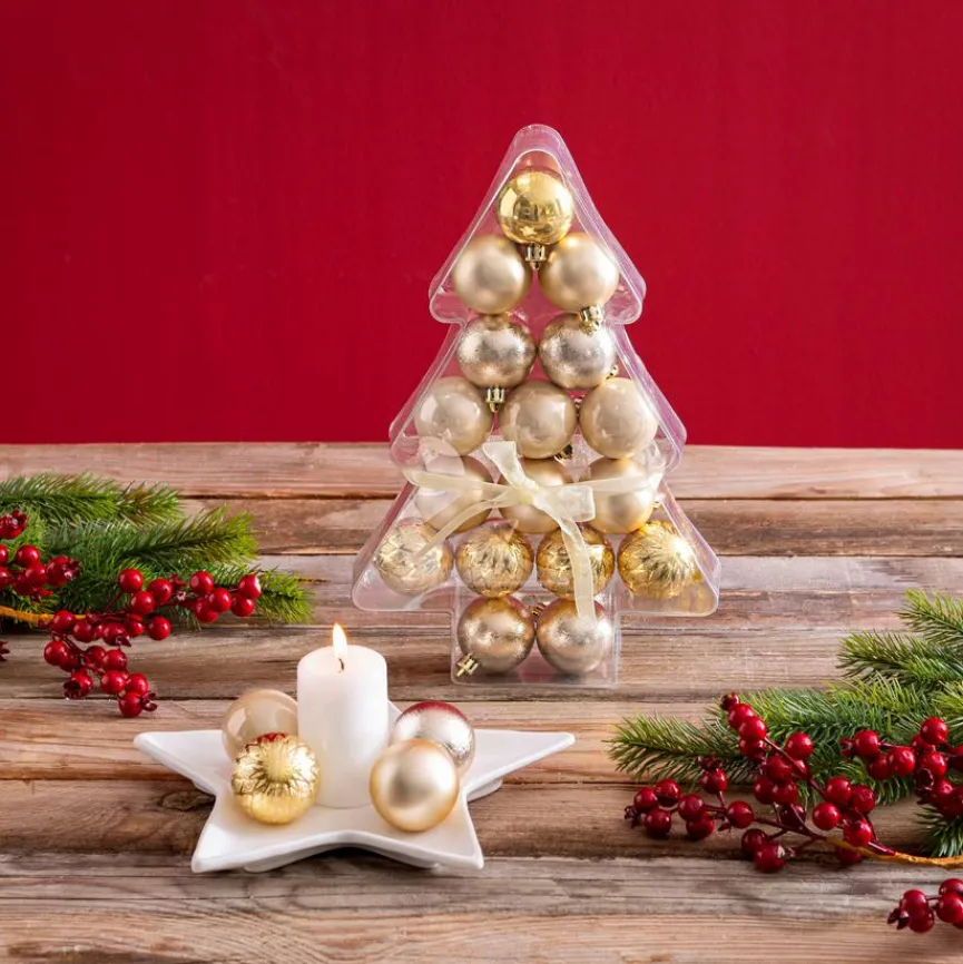 Lassen Sie in der schönsten Zeit des Jahres mit den Weihnachtskugeln 17tlg. elegante Weihnachtsmagie einziehen. Dekokings- und -queens jubeln beim Anblick der hochwertigen Christbaumkugeln, denn sie sind wahre Alleskönner, wenn es darum geht, festlich zu schmücken. Egal, ob sie am Baum oder am Adventskranz befestigt oder locker in einer Schale präsentiert werden – die Weihnachtskugeln 17tlg. bescheren Ihrem Ambiente einen edlen Touch.