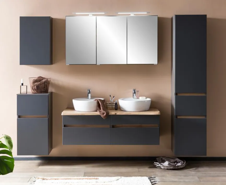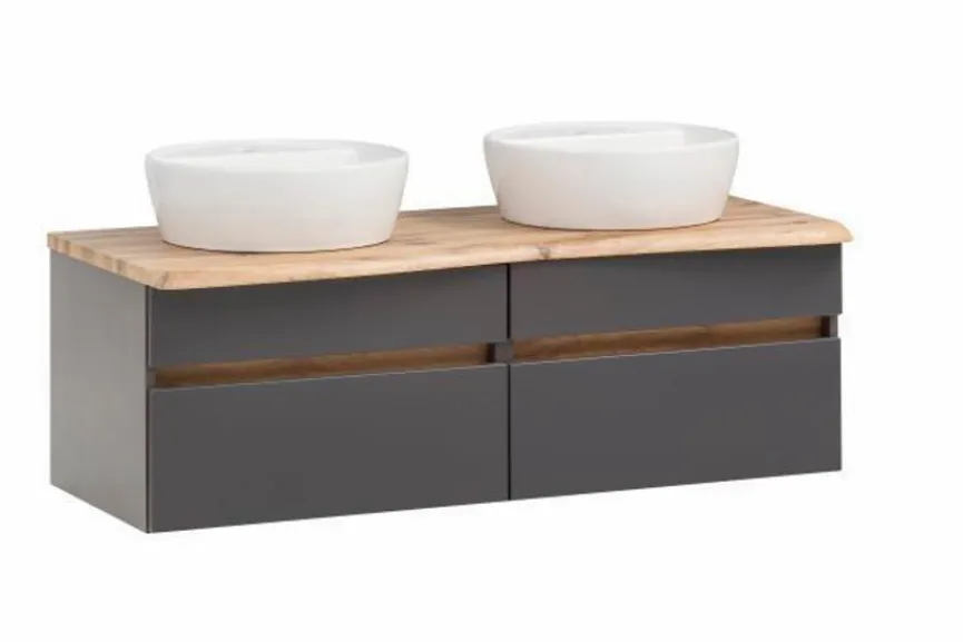 Held-Möbel präsentiert mit dem stilvollen Waschtischunterschrank Villach ein sehr praktisches Möbelstück, mit dessen Hilfe Sie den vorhandenen Platz in Ihrem Bad optimal nutzen. Der geräumige Badezimmerschrank ist mit zwei formschönen Keramik-Aufsatzbecken ausgestattet und bietet Ihnen im unteren Bereich viel Stauraum zum Unterbringen Ihrer Handtücher, Kosmetikartikel und anderer Utensilien. Nutzen Sie den eleganten Waschtischunterschrank Villach, um in Ihrer Wohlfühloase für Ordnung und Übersichtlichkeit zu sorgen!