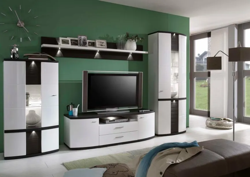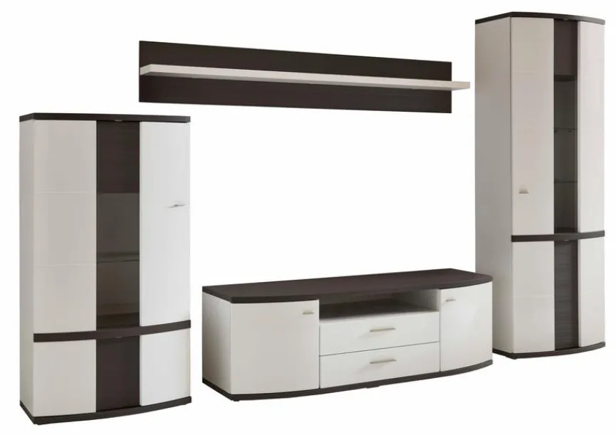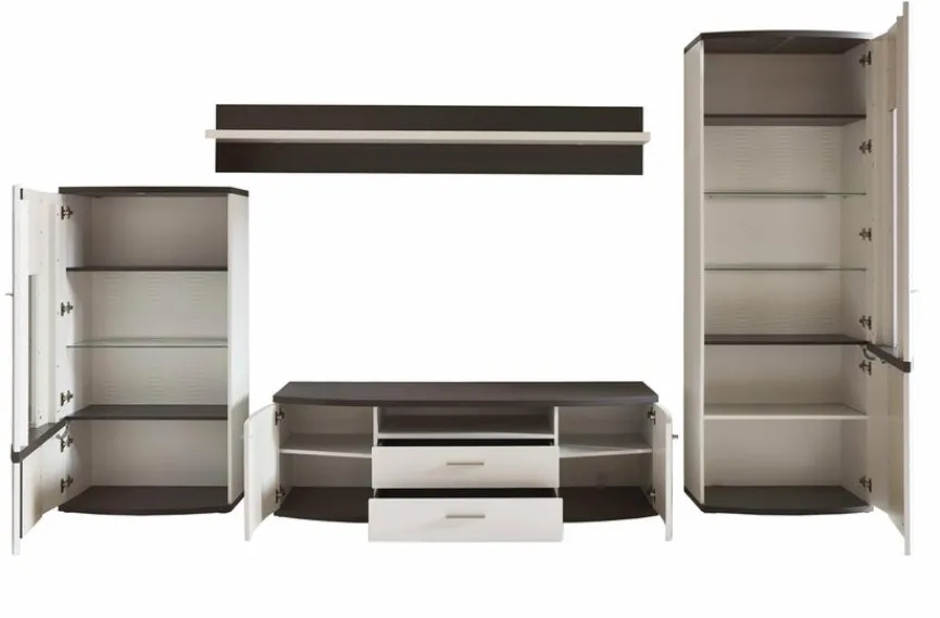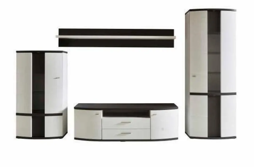 - Wohnwand bestehend aus Vitrine, Paneel, Unterteil und Highboard