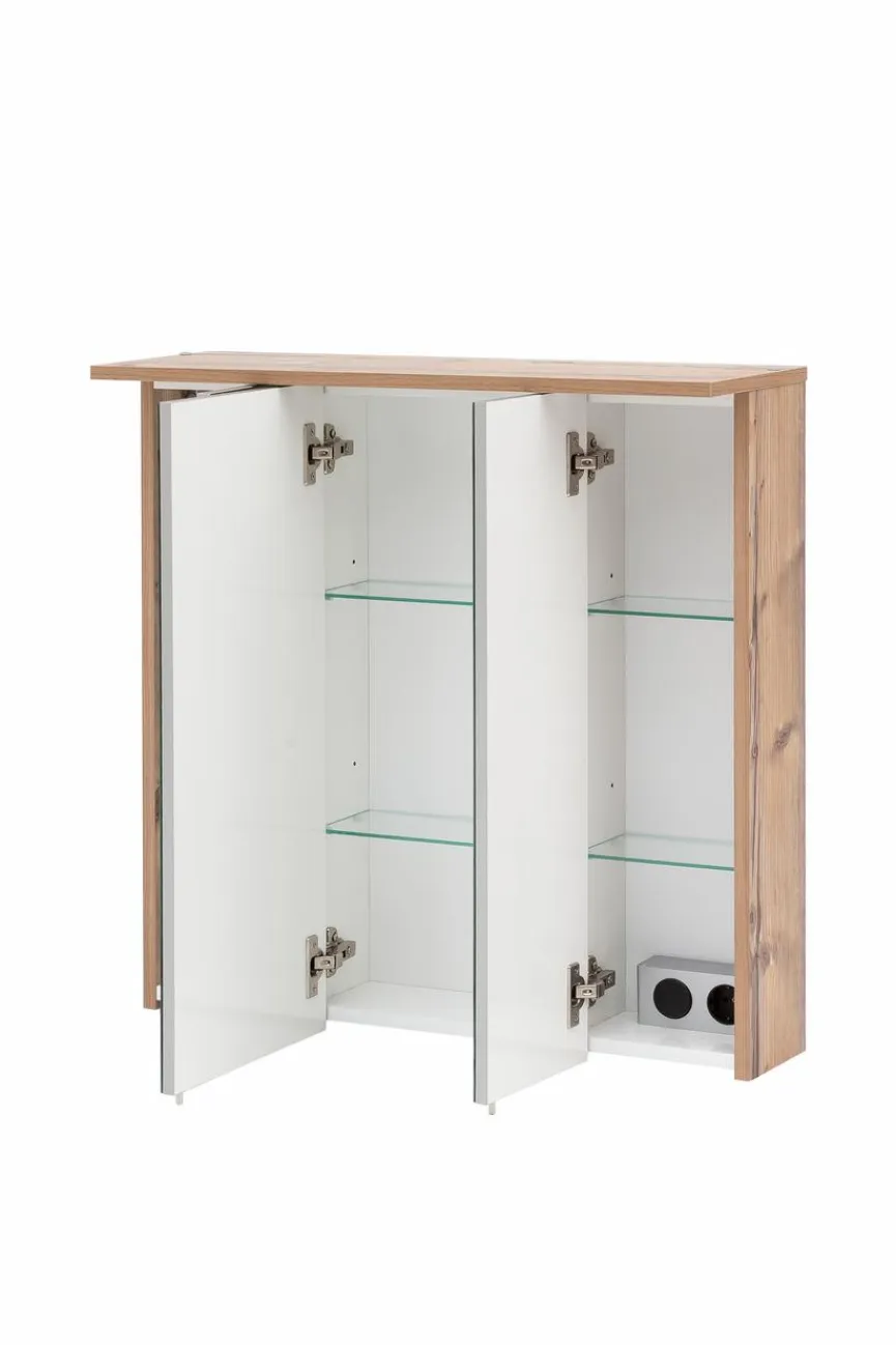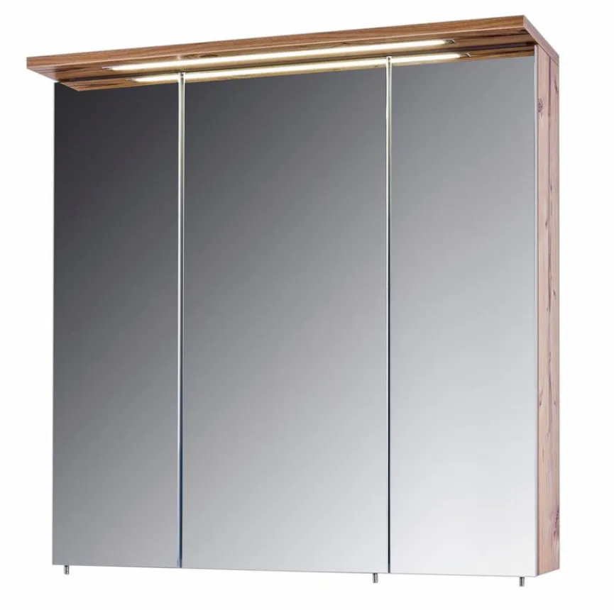 Verwandeln Sie Ihr Badezimmer mit dem dreitürigen Spiegelschrank Isola von Schildmeyer in eine stilvolle Oase. Aufgrund des integrierten Beleuchtungspanels sorgen Sie für eine angenehme Atmosphäre und perfekte Lichtverhältnisse. Bewahren Sie Ihre Pflegeprodukte und Accessoires im geräumigen Spiegelschrank Isola auf und genießen Sie Ordnung und Stil in Ihrem Bad.