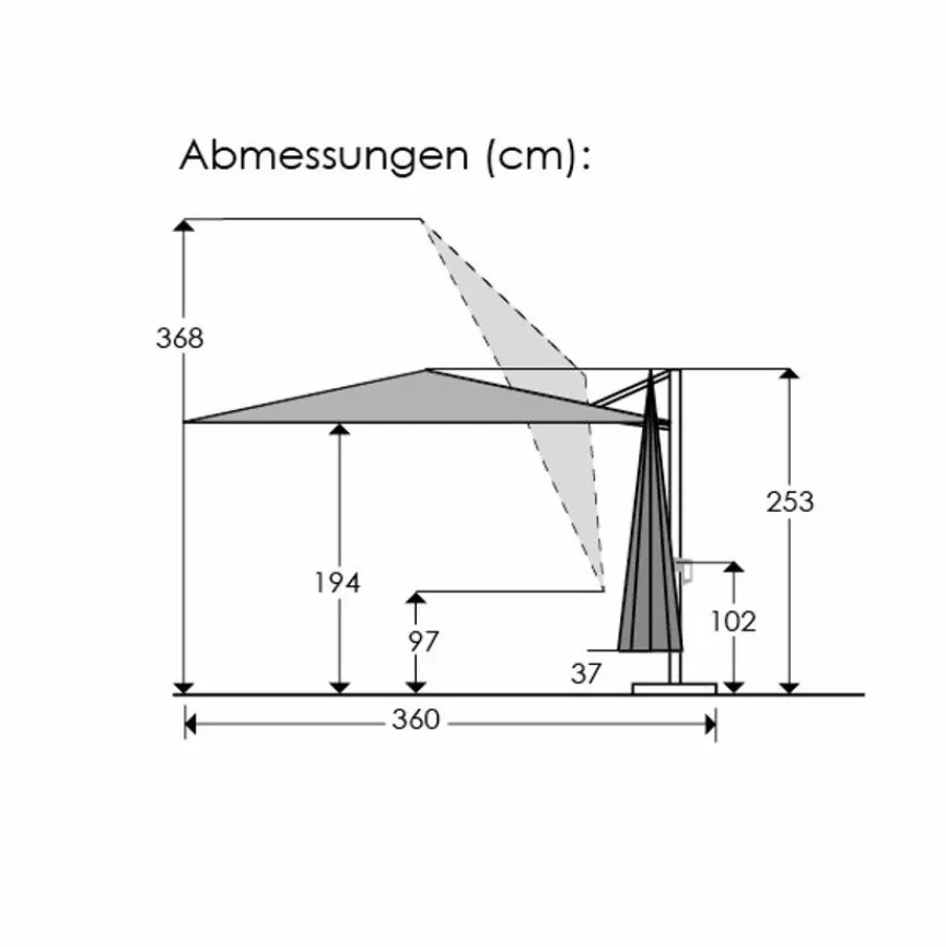 - Per Handhebel um 360 Grad drehbar, Öffnen und schließen sowie stufenlose Verstellung der Neigung am Mast