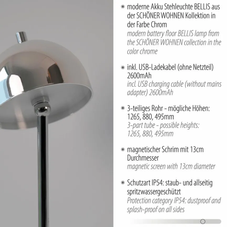Farbe: ChromMaterial: Alu, Eisen, Stahl & MetallGröße: Durchmesser: 18,00 cm, Höhe: 126,00 cm