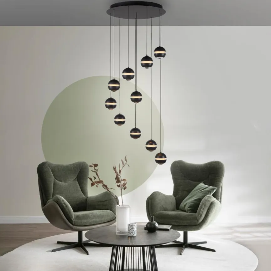 Wenn Sie ein Faible für charmante Wohnaccessoires haben, dann sollten Sie sich die LED-Pendelleuchte Lini der Marke SCHÖNER WOHNEN-Kollektion unbedingt anschauen. Sicher stimmen Sie zu, dass das Kugel-Arrangement dieser tollen LED-Pendellampe, das an ein Windspiel erinnert, einen wahren Blickfang darstellt. Nutzen Sie die LED-Pendelleuchte Lini in Ihrem Wohnbereich oder in Ihrer Praxis.