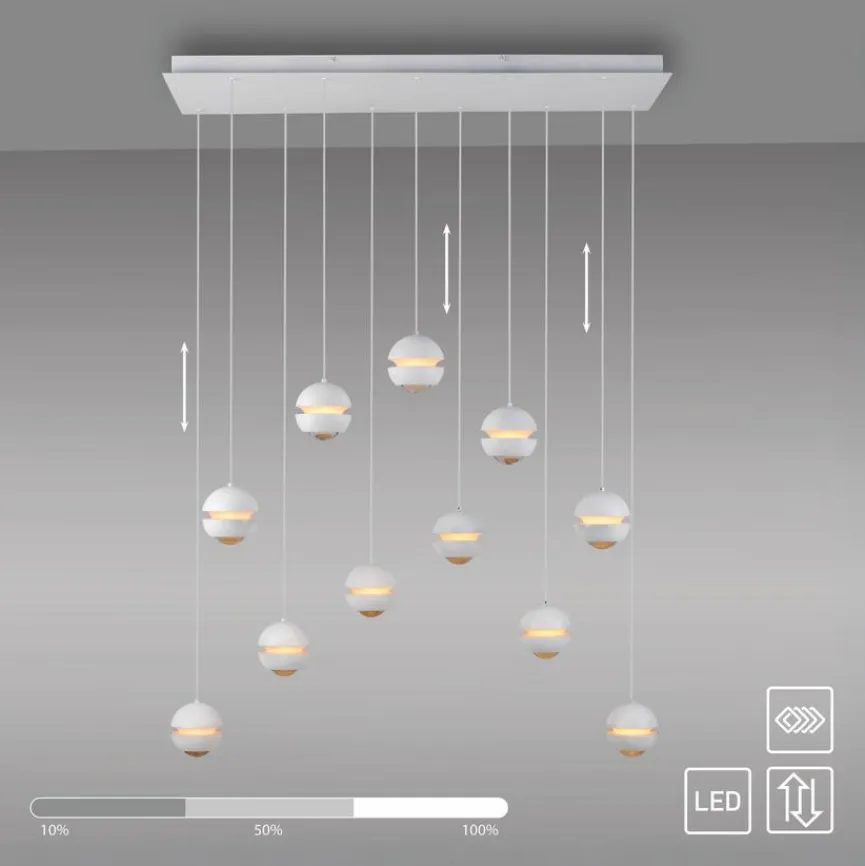 Erlesenes, exklusives und hochfunktionales Design – mit der zauberhaften LED-Pendelleuchte Lini der SCHÖNER WOHNEN-Kollektion gelingt es Ihnen spielend, eine besondere Atmosphäre zu kreieren. Das Licht der elfflammigen LED-Pendellampe fließt sanft aus hängenden, kugelförmigen Leuchtkörpern mit Comfort-Lift, durch das jedes einzelne Pendel höhenverstellbar ist. Egal, ob im Wohn-, Schlafbereich oder der Küche, die LED-Pendelleuchte Lini schafft je nach Wunsch eine klare Beleuchtung oder eine luxuriöse Lichtinsel.