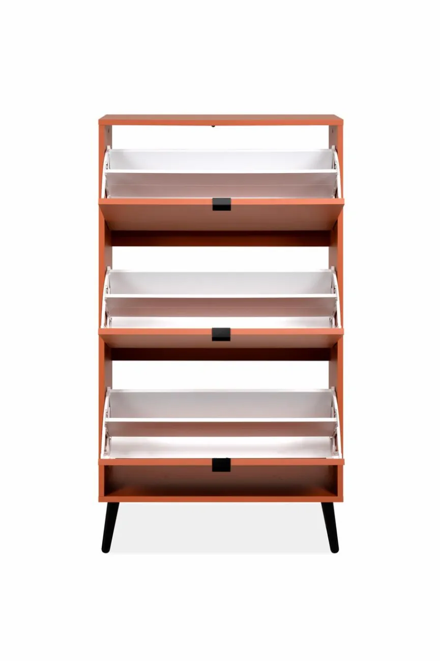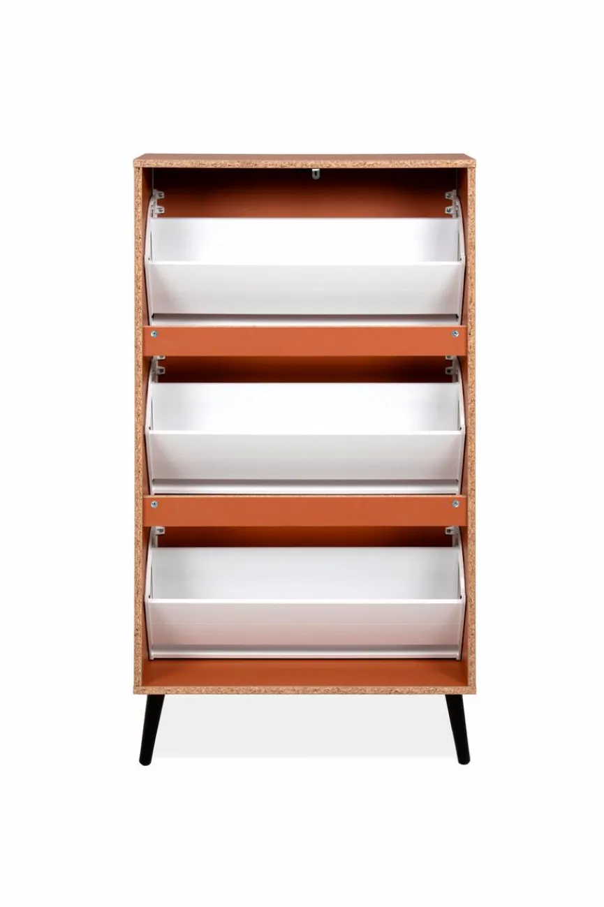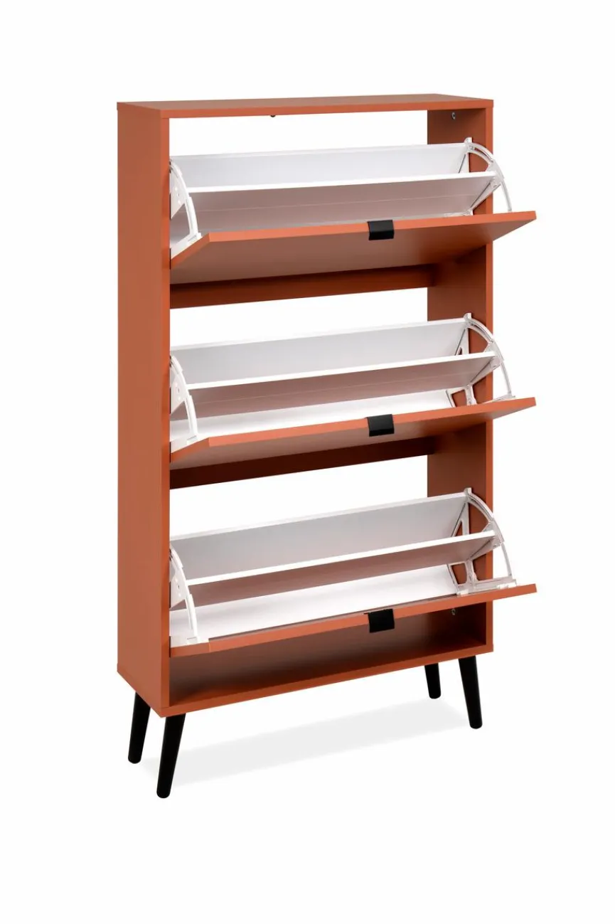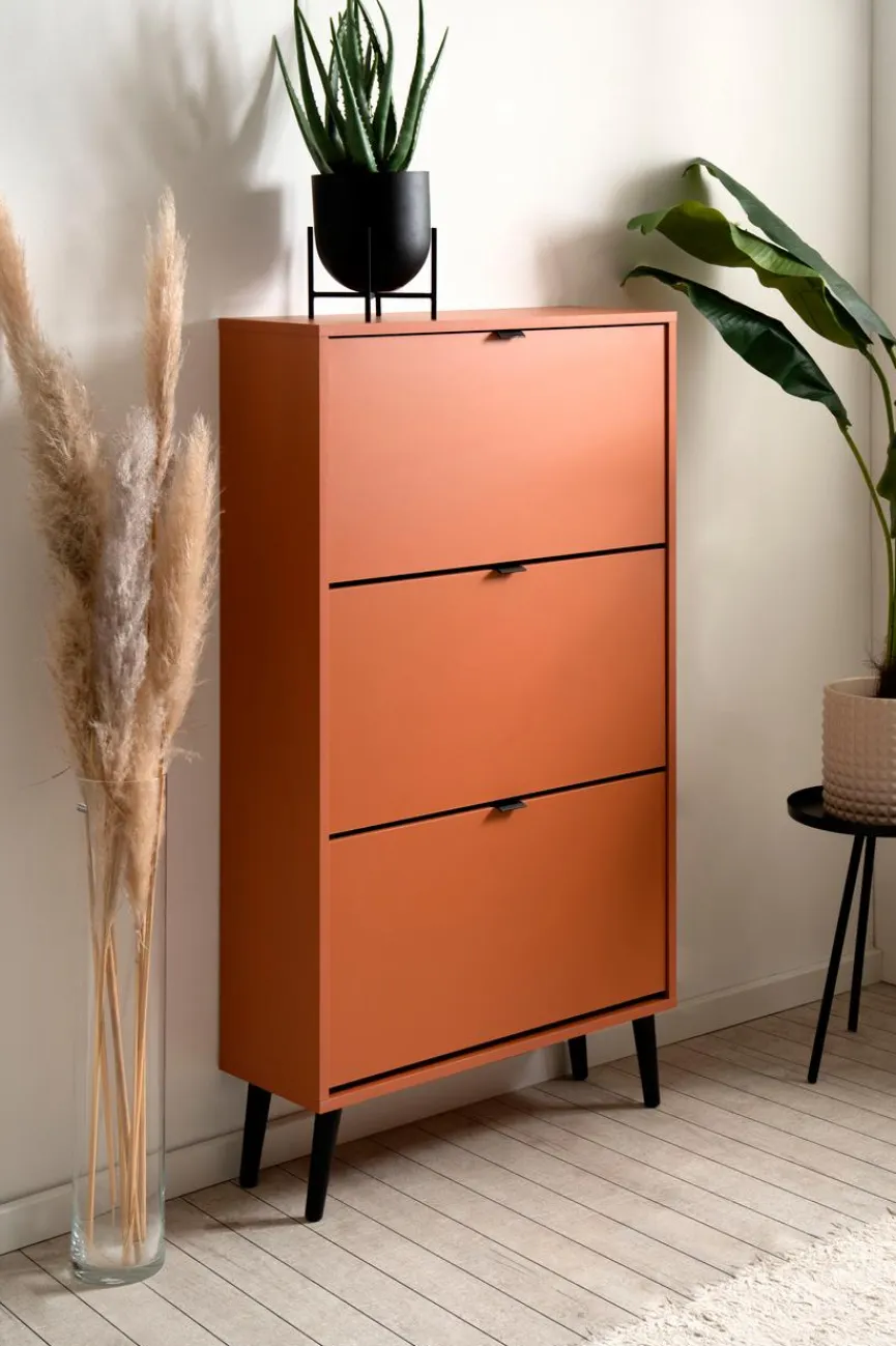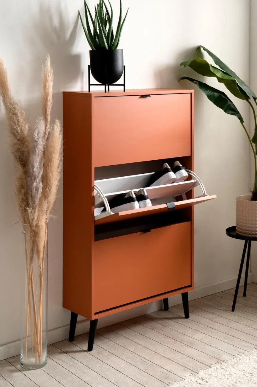 Der Schuhkipper Vigo vereint modernes Design mit praktischer Funktionalität. Mit seiner schlanken Bauweise eignet sich der Schuhkipper Vigo ideal für schmale Flure, Eingangsbereiche oder kleine Wohnungen. Hinter den klappbaren Fächern verbirgt sich großzügiger Stauraum für mehrere Paar Schuhe, die dort ordentlich verstaut werden können.