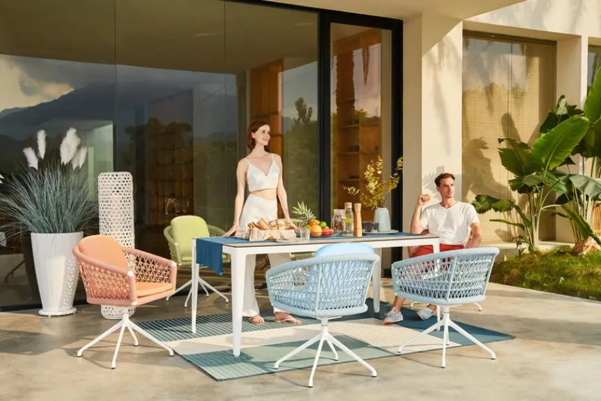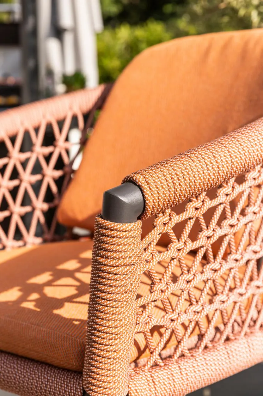 Leicht, strapazierfähig und langlebig – diese Eigenschaften machen die neue Generation von Gartenmöbeln aus Polyester Rope und Aluminium aus. Das Seilgeflecht sieht nicht nur trendig aus, sondern sorgt für eine gleichmäßige Verteilung des Gewichts des Sitzenden und schließt somit ein Verformen aus. Aufgrund der porenfreien, glatten Oberfläche der beiden Materialien ist das Gartenmöbel leicht durch Abwischen mit klarem Wasser zu reinigen. Sowohl Aluminium als auch Polyester Rope sind besonders robust und bereiten Ihnen viele Sommer lang große Freude.