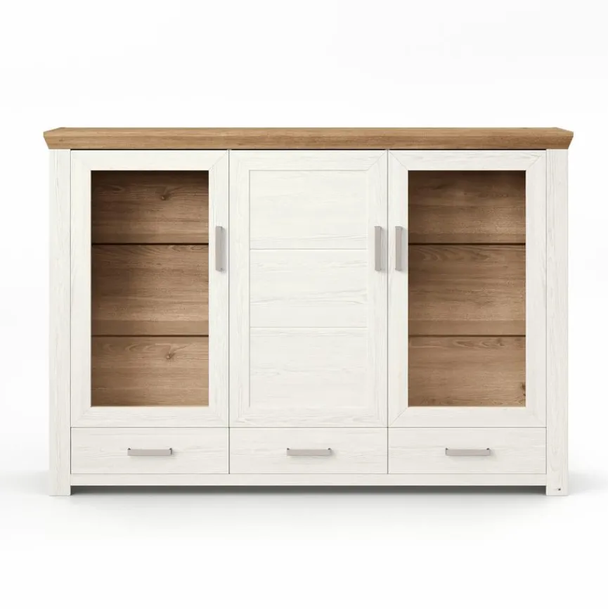 Rustikalität und Gemütlichkeit vermittelnde Akzente wie das Kranzprofil verleihen dem mit drei Türen versehenen Highboard York von set one by Musterring ein adrettes, charmant wirkendes Äußeres. Aber auch modern anmutende Designelemente machen beim set one by Musterring Highboard York die Optik aus.