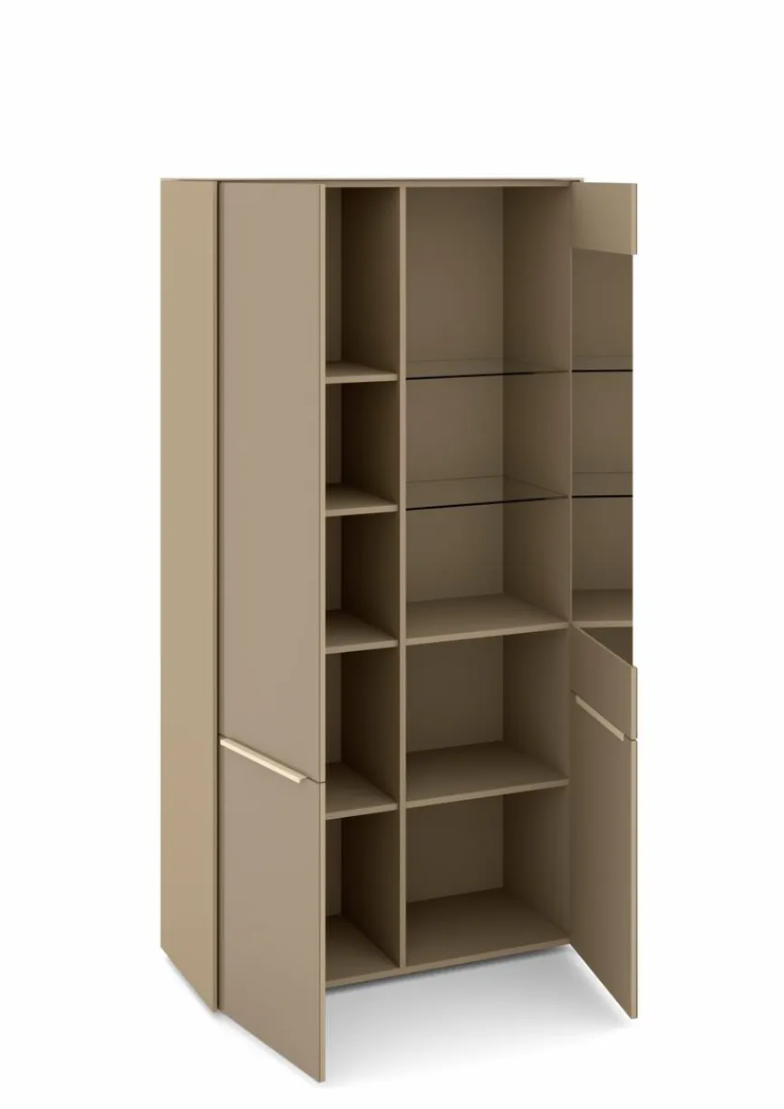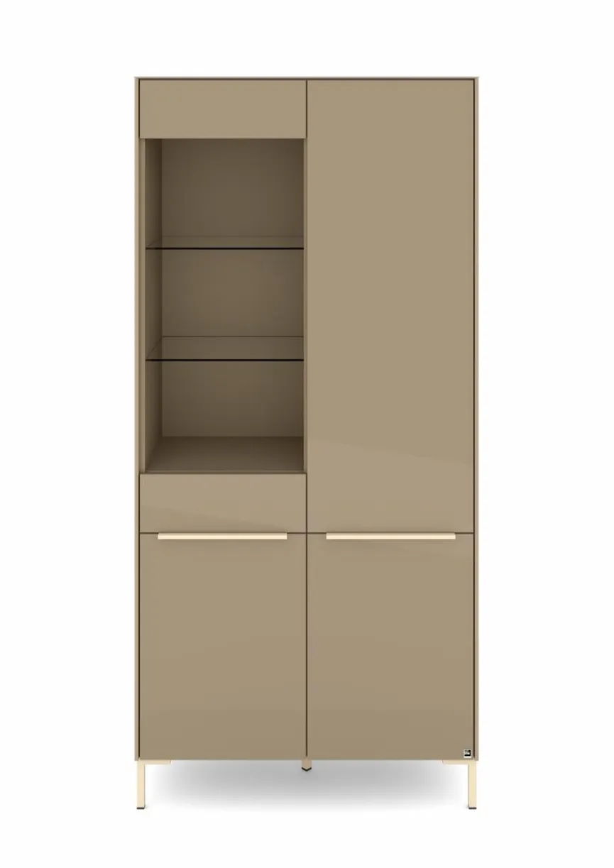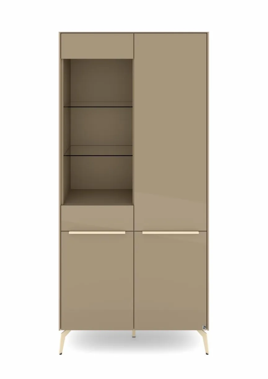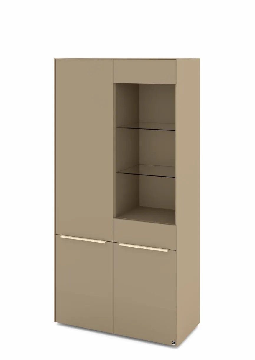 - Mit 1 Tür mit Glasausschnitt und 1 Tür, Griffe aus Metall mit Lack in kaschmir