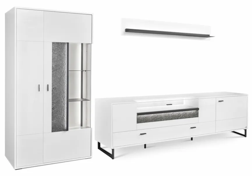 - Bestehend aus Vitrine, TV-Lowboard und Wandboard
