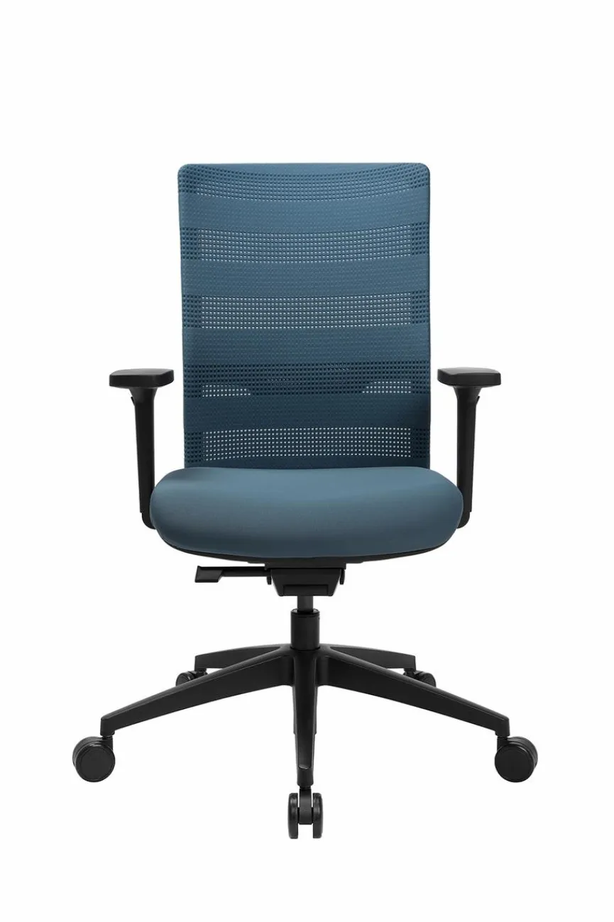 - Rückenbezug mit atmungsaktivem Netzbezug in petrol, Sitzfläche aus Stoff in petrol, Fußkreuz aus Kunststoff in schwarz