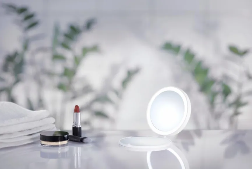Der Kosmetikspiegel Reise der Marke smedbo sollte in keiner Damen-Handtasche fehlen. Dank seiner handlichen Maße nimmt der dezente Schminkspiegel für unterwegs nicht viel Platz für sich in Anspruch. Trotz seiner geringen Größe bietet Ihnen der Kosmetikspiegel Reise des Herstellers smedbo diverse Annehmlichkeiten, wie etwa eine praktische Lichtquelle, die sich automatisch beim Zuklappen ausschaltet.