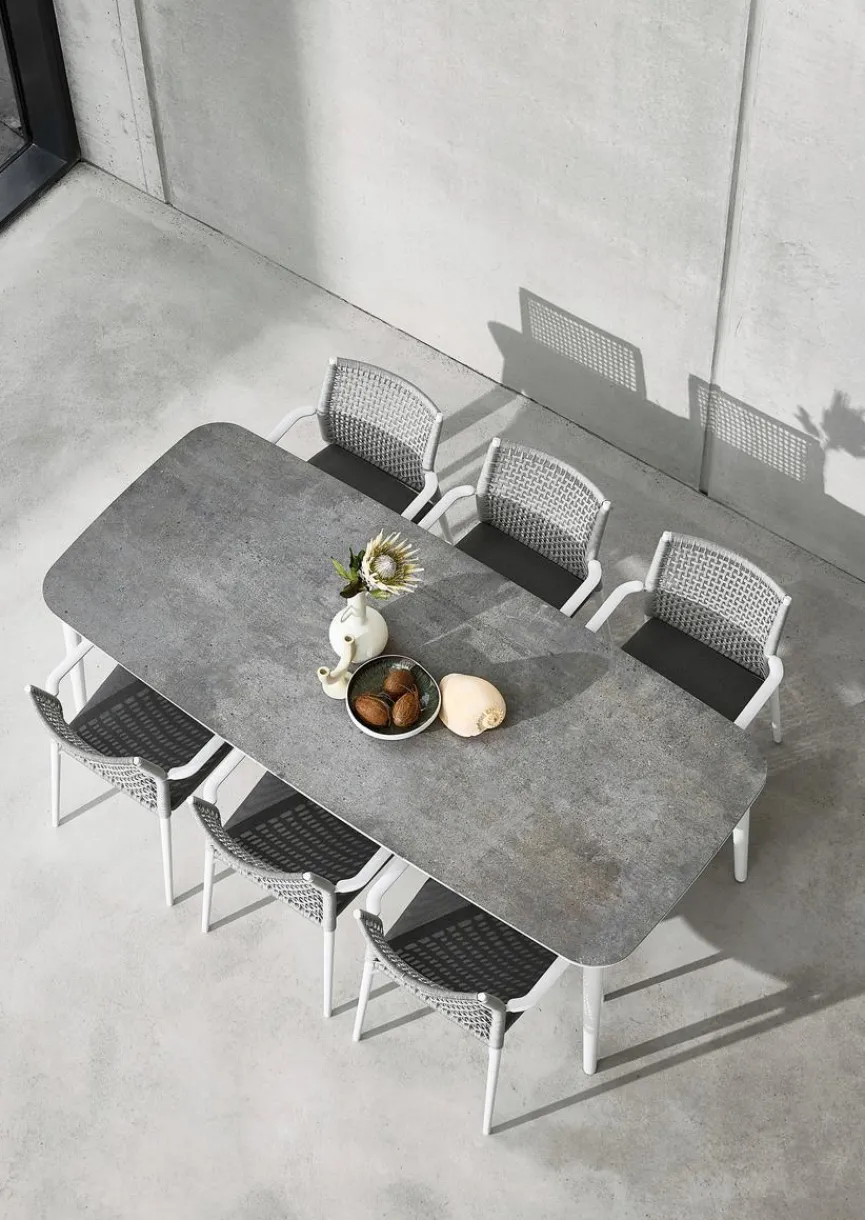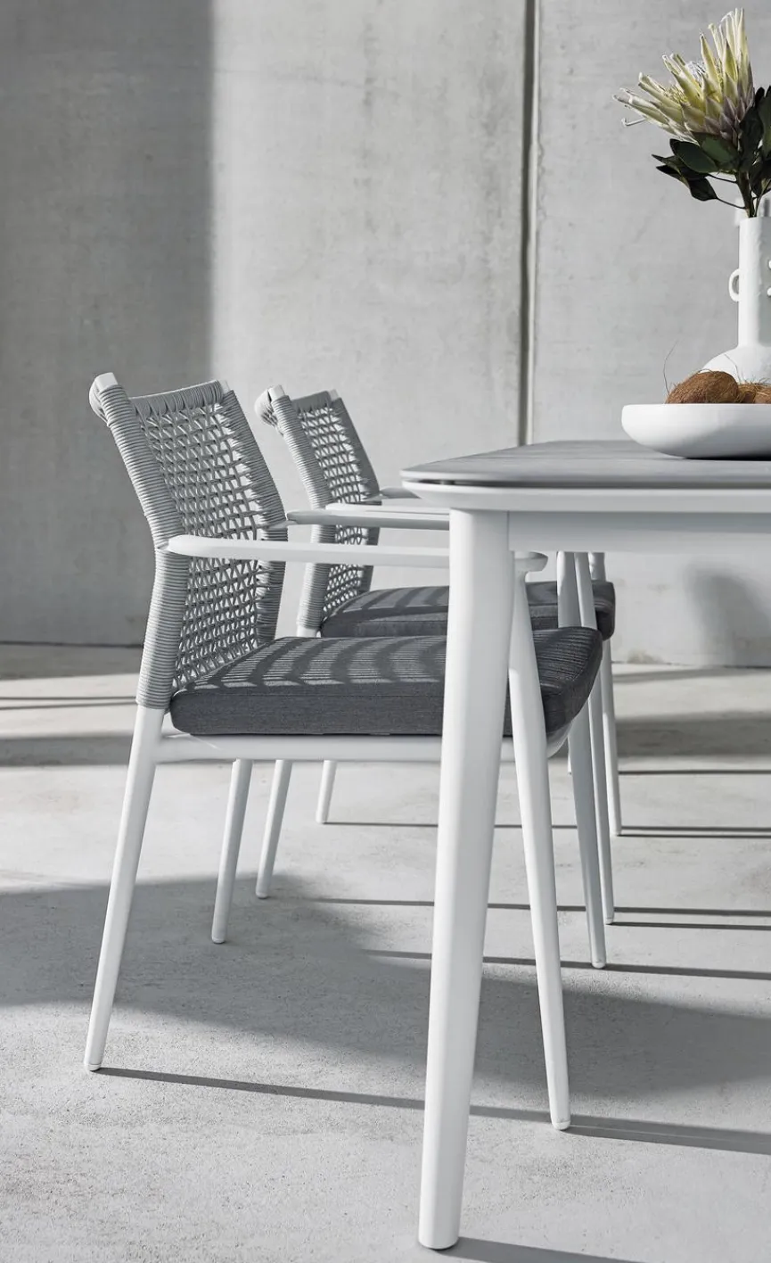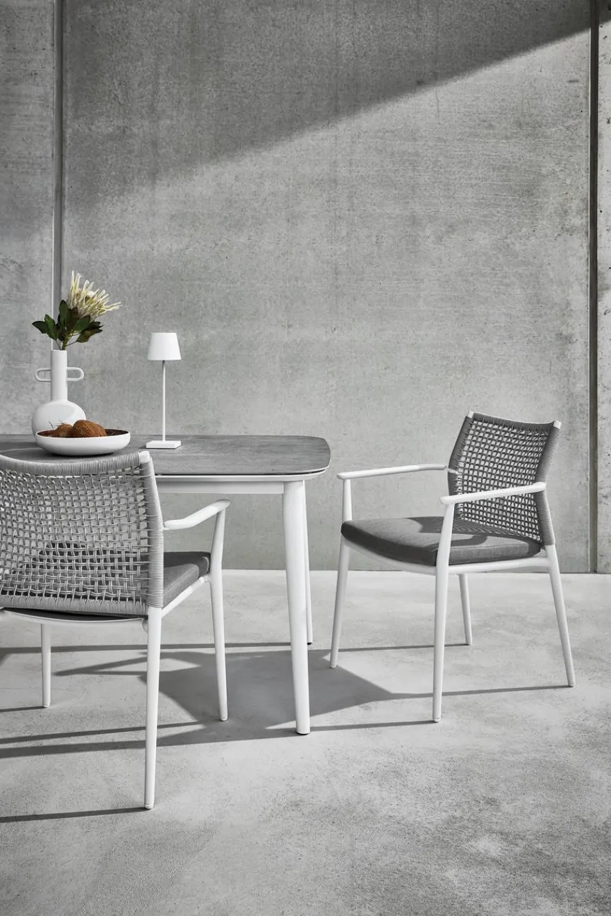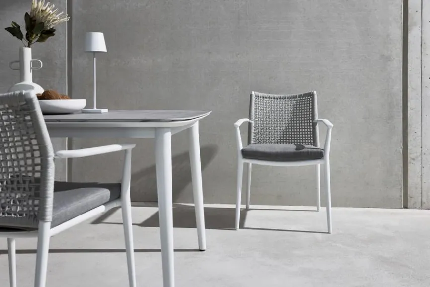 Leicht, strapazierfähig und langlebig – diese Eigenschaften machen die neue Generation von Gartenmöbeln aus Polyester Rope und Aluminium aus. Das Seilgeflecht sieht nicht nur trendig aus, sondern sorgt für eine gleichmäßige Verteilung des Gewichts des Sitzenden und schließt somit ein Verformen aus. Aufgrund der porenfreien, glatten Oberfläche der beiden Materialien ist das Gartenmöbel leicht durch Abwischen mit klarem Wasser zu reinigen. Sowohl Aluminium als auch Polyester Rope sind besonders robust und bereiten Ihnen viele Sommer lang große Freude.