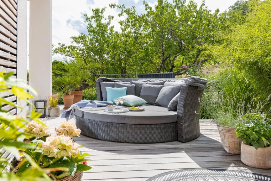 - Bei eingefahrenem Fußteil, kann die Lounge auch als Sofa genutzt werden