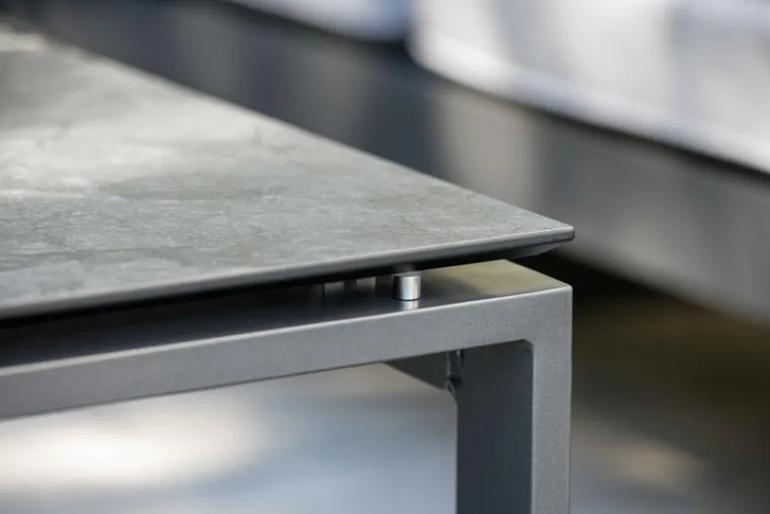 Die Tischplatten des Materials Silverstar bestehen aus 50 Lagen hochwertiger Papierlaminatschichten, die unter großer Hitze und hohem Druck mit den Dekorpapieren auf Ober- und Unterseite verpresst werden. Durch diese Technik erlangen die Tischplatten ganz spezielle Eigenschaften – sie sind feuchtigkeitsbeständig, kälte- (-20°C) und hitzebeständig (180°C), UV-beständig und haben eine hohe Kratzfestigkeit. Aufgrund der widerstandsfähigen Schichtstoffoberfläche sind die Silverstar-Tischplatten besonders pflegeleicht und abriebfest. Unabhängig von der Dekoroberfläche ist der Kern immer schwarz, was an der Kante der Platte zu erkennen ist. Zur Sicherung der Formstabilität müssen die Silverstarplatten fest mit dem Tischgestell Aluminium verschraubt werden.