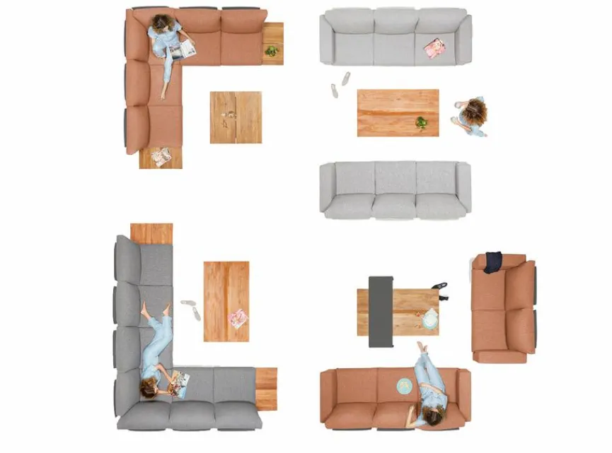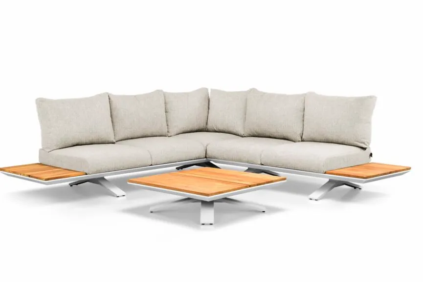 - Set besteht aus 1x 3-Sitzer mit Ecke und Seitentisch, 1x 2-Sitzer mit Seitentisch und 1x Loungetisch