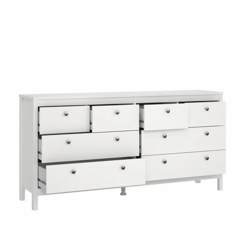 Die Kommode Madrid Tvilum verbindet klare Linien mit einer ruhigen, ausgewogenen Frontgestaltung und sorgt so für Ordnung mit stilvollem Anspruch. Dezent-modern im Ausdruck, fügt sich die Kommode Madrid harmonisch in Schlafzimmer, Flur oder Wohnbereich ein. Das dänische Label steht für funktionales Design, das den Alltag strukturiert, ohne sich in den Vordergrund zu drängen.