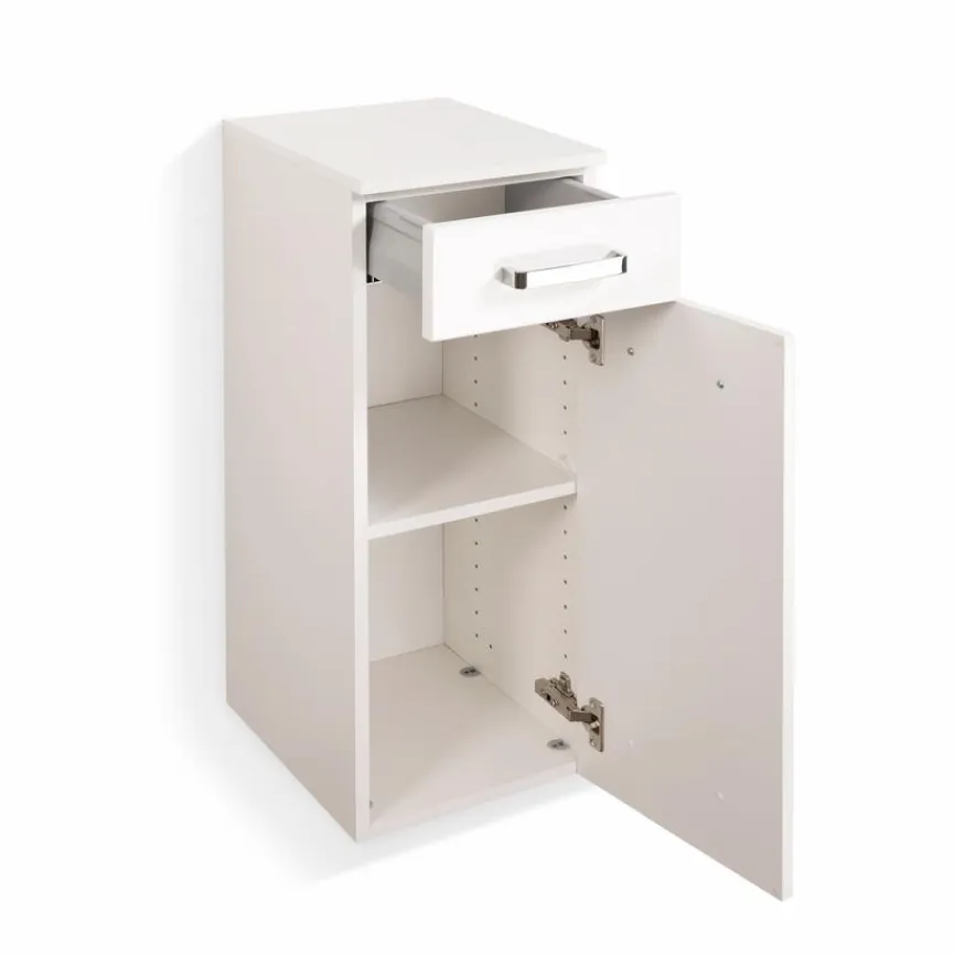 - Mit 1 Tür, 1 Einlegeboden und 1 Schubkasten