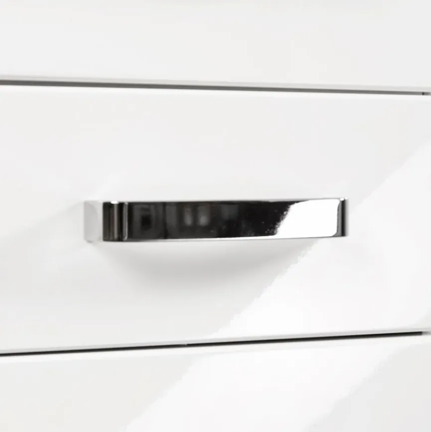 - Front aus Holzwerkstoff (MDF) mit Hochglanzfolie in weiß, Korpus aus Holzwerkstoff (Spanplatte) mit Folie in weiß