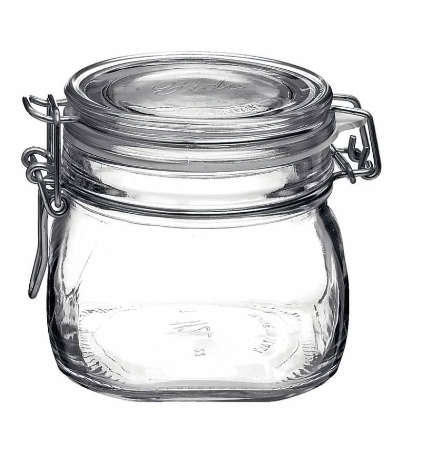 In der luftdicht verschließbaren, hygienischen Vorratsdose Fido 500 ml von Wellco lassen sich eingelegte, eingekochte und konservierte Lebensmittel aufbewahren. Auch trocken zu lagernde Nahrungsmittel wie Müsli oder Kekse finden in dem schlichten Gefäß Platz. Sie können die Vorratsdose Fido 500 ml natürlich auch mit selbstgemachten Leckereien befüllen, mit einer Schleife versehen und als kleine Aufmerksamkeit verschenken.