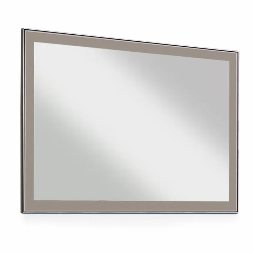 - Front aus Glas in Taupe auf Spanplattenfüllung mit umlaufenden alufarbigen Rahmen