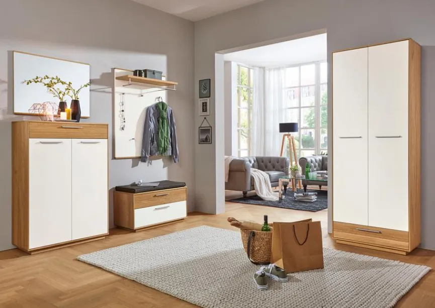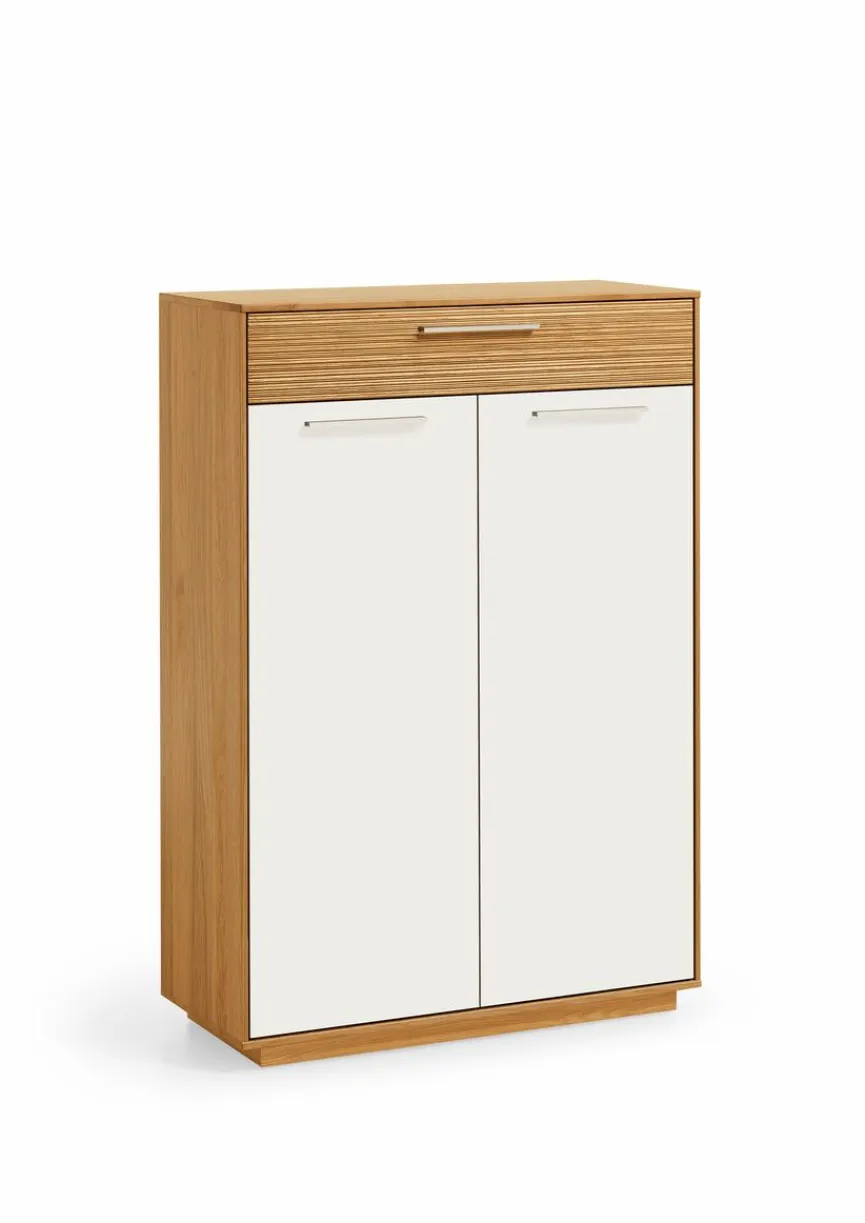 Harmonische Formen und eine geschmackvolle zweifarbige Gestaltung machen die Schuhkommode Loveno der Marke Voss Möbel zu einem echten optischen Highlight. Mit diesem eleganten Design ist der Schuhschrank weit mehr als nur ein praktisches Regal für Schuhe und andere Dinge. Dank der verstellbaren Böden bietet die Schuhkommode Loveno von Voss Möbel individuellen Stauraum.