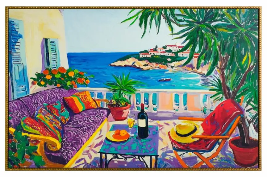 Farbenfroh und ausdrucksstark ist das Wandbild 82,8×82,8 cm Violett Summer, das gekonnt den Charme südlicher Gefilde vermittelt und Urlaubsgefühle weckt. So setzt das Deko Bild nicht nur tolle Akzente, sondern löst auch positive Gefühle aus. Lassen Sie sich vom Wandbild 82,8×82,8 cm Violett Summer verzaubern und schmücken Sie Ihr Zuhause mit Lebensfreude pur, festgehalten mit dem Pinsel.
