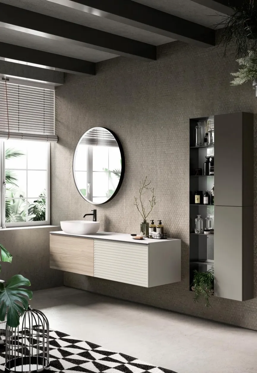 - Waschtischunterschrank mit Auszug mit Fronttype Stripes in weiß matt lackiert
