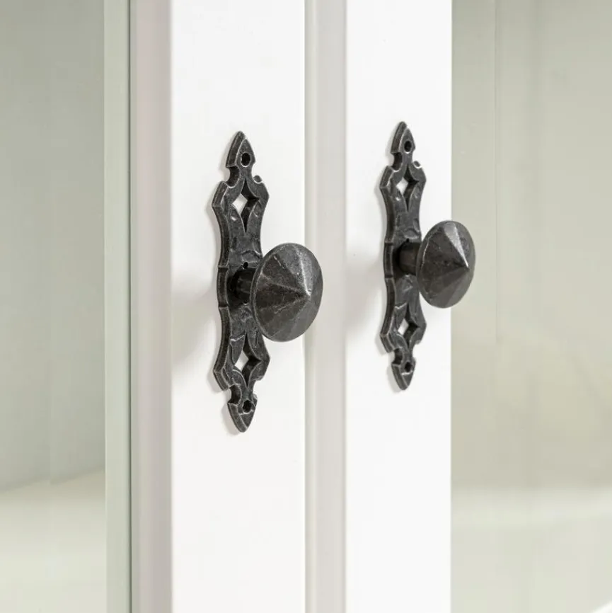 Mit dem Buffet Maisonette sichern Sie sich ein Küchenmöbel im klassischen Design, das unter anderem hervorragend zum Landhausstil passt. Der Buffetschrank wartet unter anderem mit zierenden Beschlägen und Fräsungen auf. In der Küche oder dem Esszimmer bietet das Buffet Maisonette mit seinem Vitrinenaufsatz die Möglichkeit, ein besonders hübsches Service oder Deko stilvoll zu präsentieren.