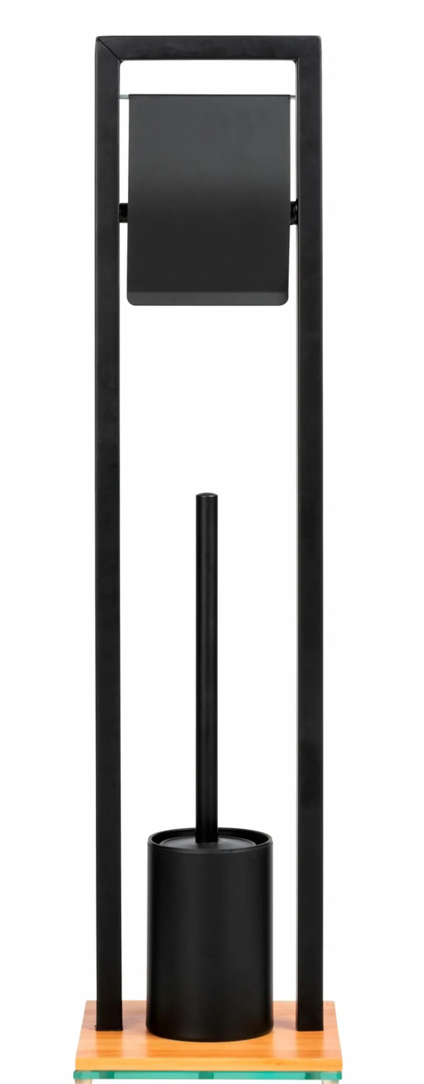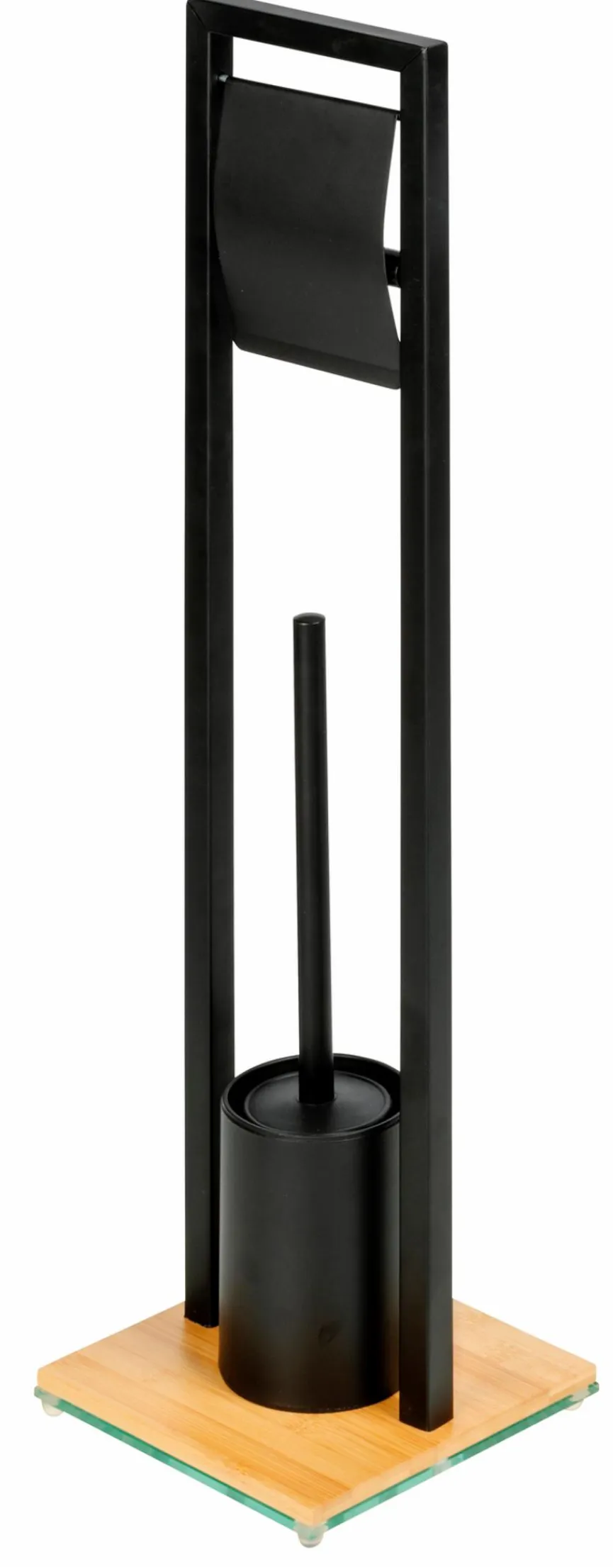 Bei der WC-Garnitur Bambusa aus dem Hause WENKO treffen eine hohe Funktionalität und eine schicke Optik zusammen. Markante Formen und ein gelungener Kontrast zwischen Elementen aus Holz und Metall verleihen der WC-Bürstengarnitur ein attraktives Äußeres. Darüber hinaus vereint die WC-Garnitur Bambusa von WENKO zwei Funktionen und nimmt sowohl eine Bürste als auch eine Papierrolle auf.
