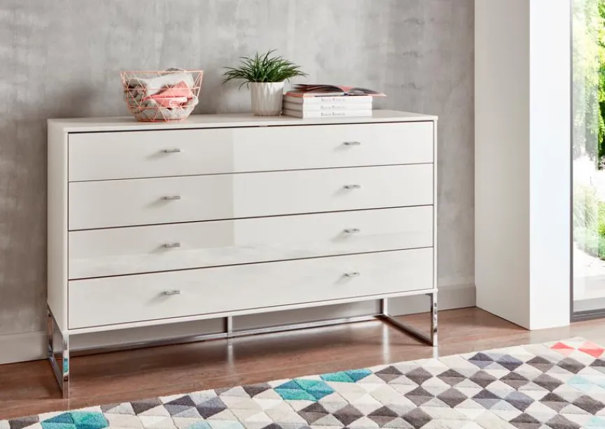 Die edle Kommode Vigo von Wiemann überzeugt mit dem Charme des modernen Purismus. Sie ist kompatibel mit jedem Einrichtungsstil und passt prima zu allen Farben. In der Wiemann Kommode Vigo kann man zum Beispiel Bücher und Zeitschriften, Videospiele, Geschirr oder Hobby-Zubehör aufbewahren.