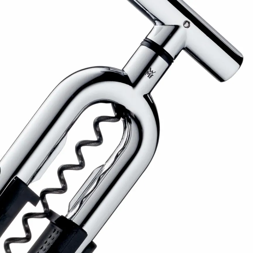 Der Korkenzieher Vino von WMF ist ein patentiertes, vielfach preisgekröntes Produkt. Ein ästhetisches und vor allem funktionales Design zeichnet das nützliche Utensil aus, das gut in der Hand liegt und dessen zweifach beschichtete Spiralschraube mühelos in den zu entfernenden Korken gleitet. Dank des breiten Drehgriffs lassen sich Flaschen ohne großen Kraftaufwand öffnen, sodass der Korkenzieher Vino jeden Haushalt bereichert.