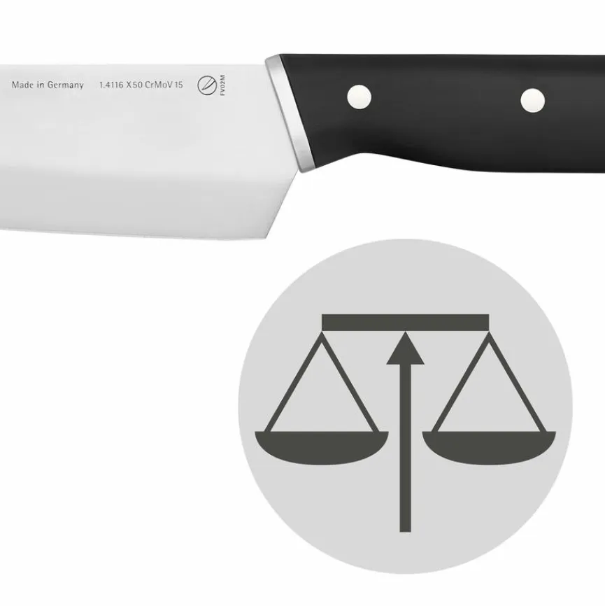- Artikel beinhaltet je 1x Messerblock, Kochmesser 20 cm, Gemüsemesser 9 cm, Brotmesser 20 cm mit Doppelwellenschliff, Fleischmesser 20 cm und Küchenschere