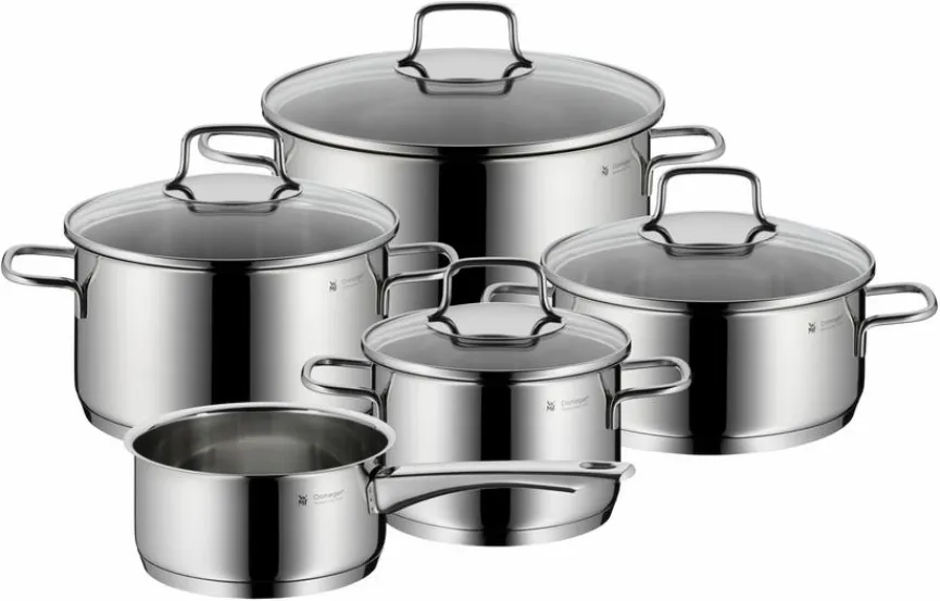 - Artikel beinhaltet je 1x Fleischtopf Ø 16 cm, Ø 20 cm, Ø 24 cm, Bratentopf Ø 20 cm je mit Glasdeckel und 1x Stielkasserolle Ø 16 cm ohne Deckel