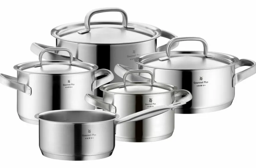 - Artikel beinhaltet je 1x Bratentopf Ø 20 cm (2,5l), Fleischtopf Ø 16 cm (1,9l), Ø 20 cm (3,9l), Ø 24 cm (5,7l) je mit Deckel und Stielkasserolle Ø 16 cm (1,4l) ohne Deckel
