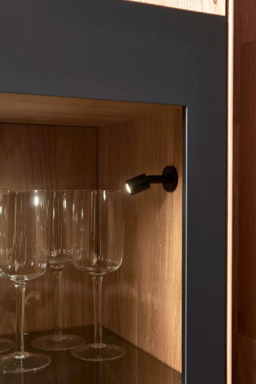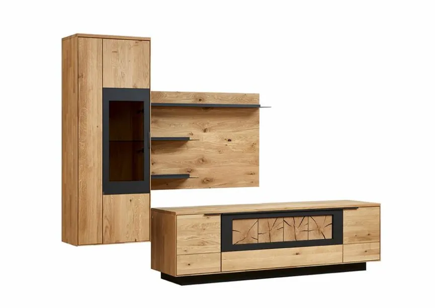 - Front und Korpus aus massiver und soft gebürsteter Wildeiche, Akzent strukturgepulvert in carbonfarbig