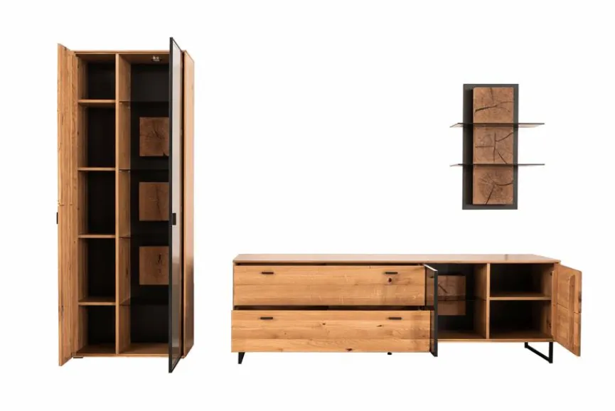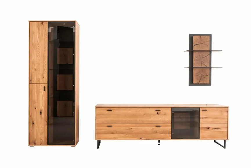 - Wohnwand aus Vitrine, TV-Element und Wandregal