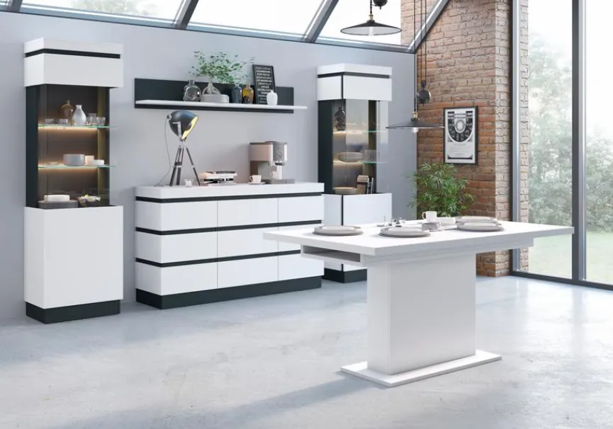 Der Esstisch Campania 160/200×90 cm von Wójcik wirkt mit seinem ungewöhnlichen Design wie aus einer anderen Zeit und verleiht Ihrem Zuhause dadurch ein ganz besonderes Ambiente. Dank der praktischen Ausziehfunktion lässt sich der Esszimmertisch mühelos vergrößern und bietet Ihren Gästen zusätzlich Platz. Besonders gut wirkt der Esstisch Campania 160/200×90 cm zu modernen Einrichtungskonzepten.