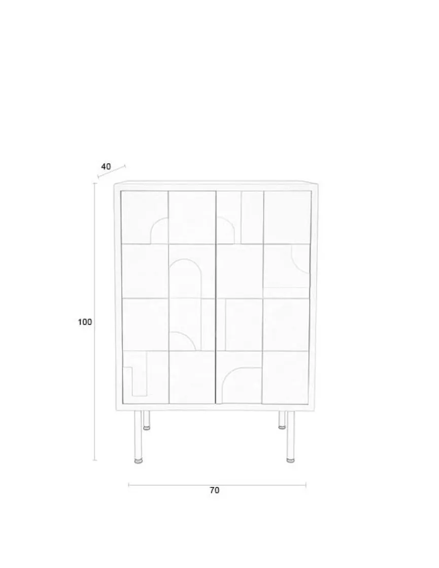 Die niederländische Marke Zuiver präsentiert mit der schicken Kommode Funk ein Ordnungsmöbel, das sich zum Verstauen von Geschirr, Textilien, Büchern oder auch Schuhen nutzen lässt. Hinter den zwei Türen mit reizvollem 3D-Effekt verbergen sich zwei Einlegeböden, die den Innenbereich unterteilen. Auch auf ihrer Oberseite bietet die Kommode Funk Platz zum Abstellen oder Präsentieren von diesem oder jenem, beispielsweise von dekorativen Objekten.