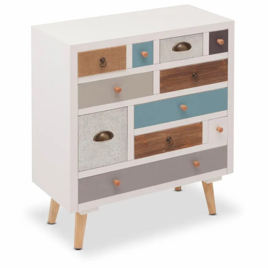 Die Kommode 11S Thais setzt mit ihrer extravaganten Optik einen optischen Akzent in Ihrer Einrichtung. Durch die bunten und verschieden großen Schubladen ist das Sideboard ein echter Hingucker. Außerdem bietet die Kommode 11S Thais auch genügend Stauraum für die geordnete Aufbewahrung von verschiedenen Gegenständen.