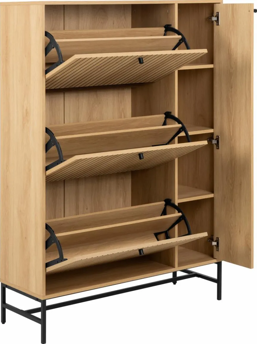 Der Schuhkipper Albany von Actona vereint moderne Funktionalität mit einer stilvollen Optik. Dank des großzügigen Platzes im Inneren sorgt der Schuhschrank für ein aufgeräumtes Ambiente im Flur. Zudem fügt sich der Schuhkipper Albany durch seine klare Linienführung und die natürliche Farbgebung harmonisch in verschiedene Einrichtungskonzepte ein.