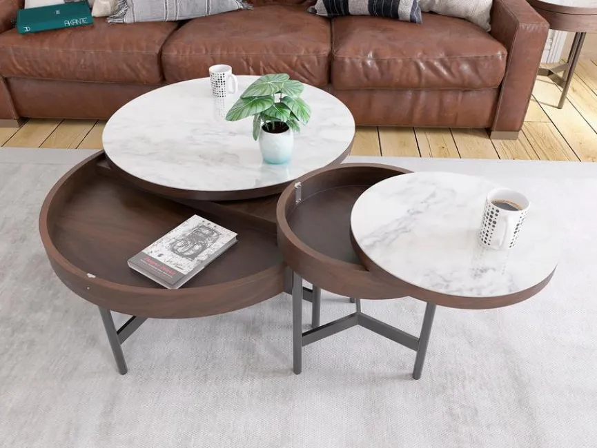 Der Couchtisch Kingston von Akante wirkt edel und stylisch zugleich. Oberflächen in Marmoroptik und die Holzakzente bringen sowohl luxuriösen Chic als auch Gemütlichkeit mit sich. Eine perfekte Option ist dieser Wohnzimmertisch für ein Vintage-Ambiente. Unter der schwenkbar gestalteten Tischplatte, mit der der Couchtisch Kingston versehen ist, können allerlei Dinge verstaut werden.