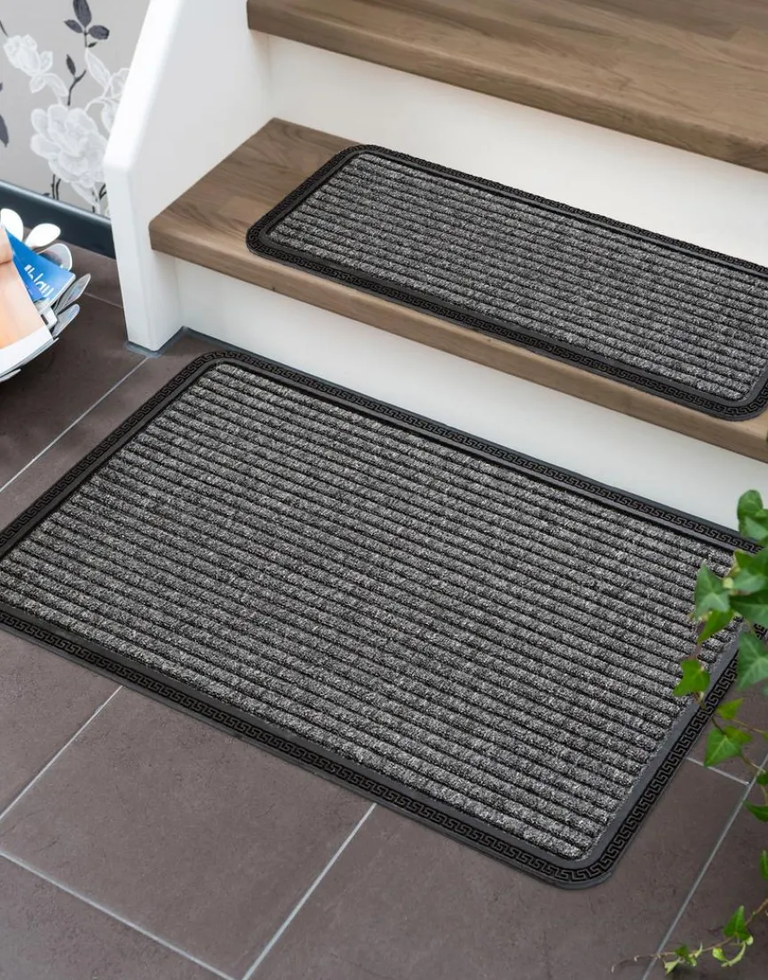 Die aus Polypropylen und Gummi hergestellte Fußmatte Border Star 40×60 cm von Astra trägt dazu bei, den Innenbereich vor Verunreinigungen zu schützen. Als Schmutzfangmatte eignet sich das textile Element beispielsweise für den Einsatz vor Haus-, Wohnungs- oder Balkontüren. Dank der Rillenstruktur fangen sich beim Abstreifen der Schuhe auch gröbere Partikel in der unifarbenen, von Astra produzierten Fußmatte Border Star 40×60 cm.