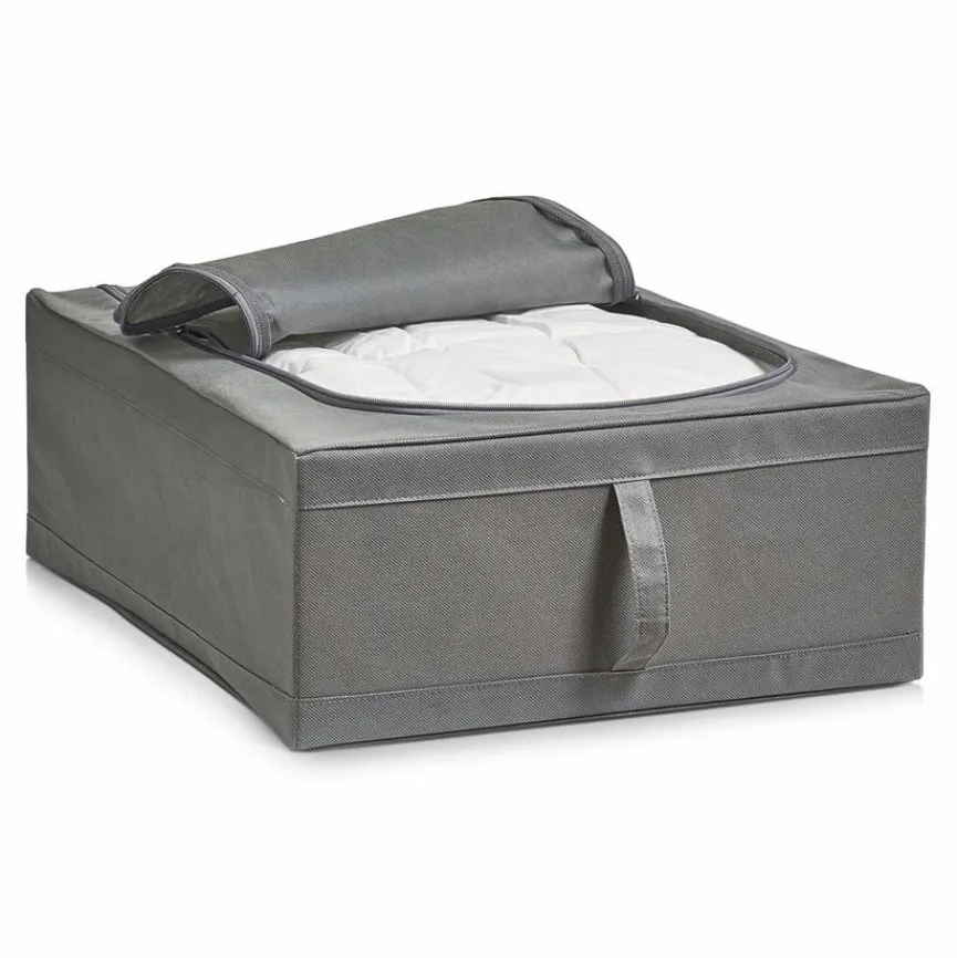 Mit der Aufbewahrungsbox 44x55x19 cm haben Sie die Möglichkeit, in Ihrem Kleiderschrank endlich wieder Platz zu schaffen. Lagern Sie Ihre überflüssige Kleidung oder das Bettzeug für die Gäste staubfrei in der Dekobox mit dem praktischen Reißverschluss. Die Aufbewahrungsbox 44x55x19 cm ist dafür besonders gut geeignet.